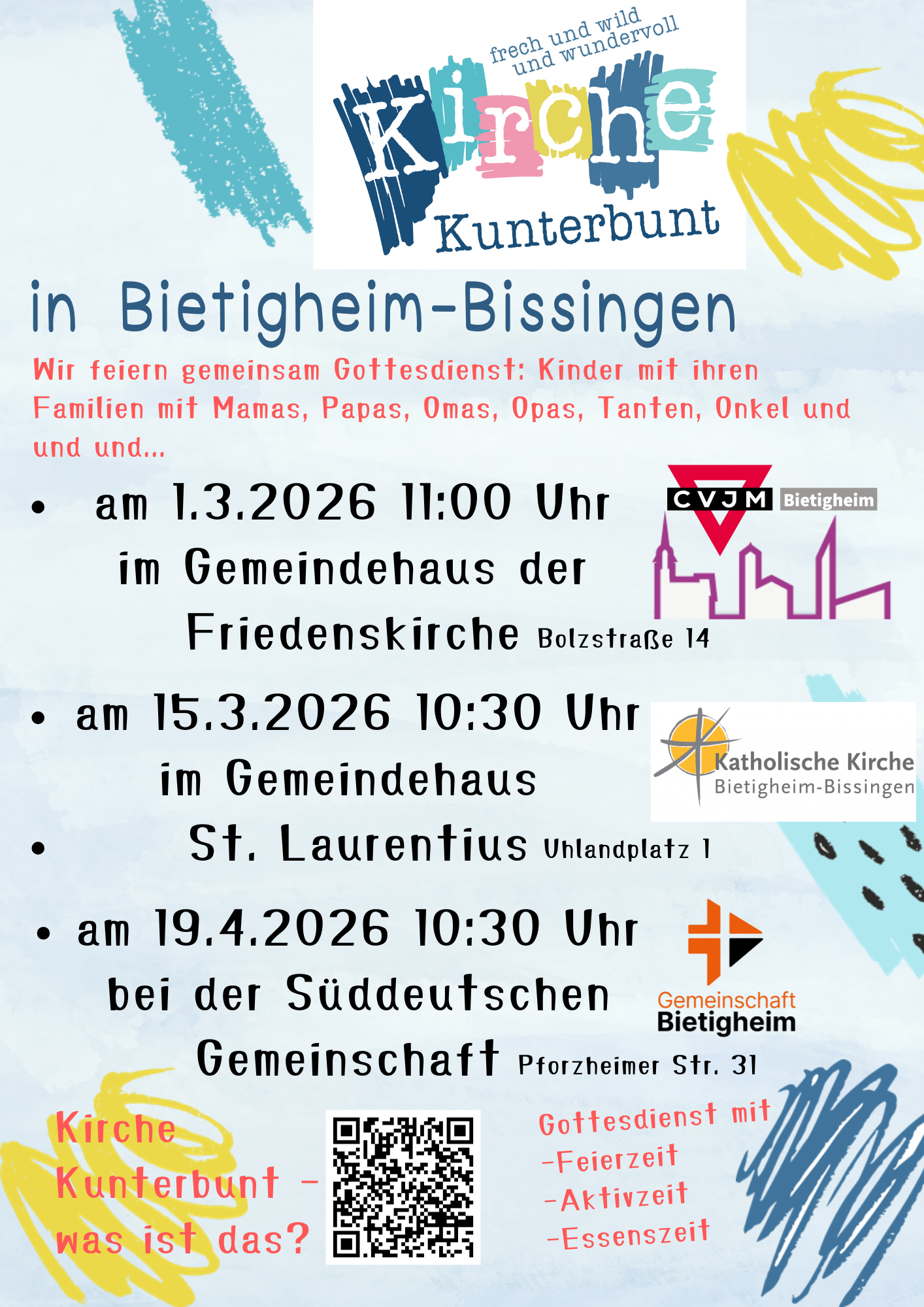 Der family-Gottesdienst wird vom CVJM Bietigheim und der Evangelischen Gesamtkirchengemeinde Bietigheim veranstaltet.